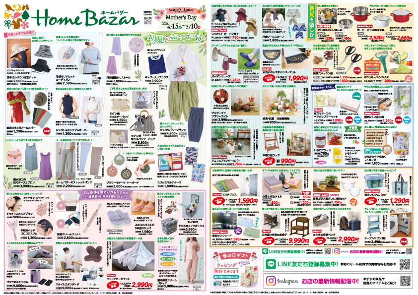 この他にも、お得なキッチンアイテムやお家を彩るインテリアグッズなど様々なアイテムを取り揃えました。ぜひ、ホームバザー各店へお越しください。皆様のお越しをお待ちしております。